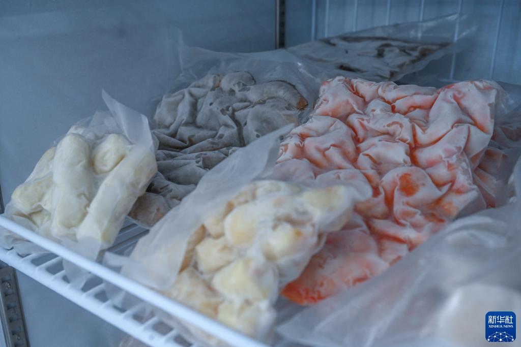 這是福建淼天匯食品有限公司一樓展廳凍櫃裏的魚糜製品、蝦餅、蝦滑等産品(8月24日攝)。新華社記者 周義 攝