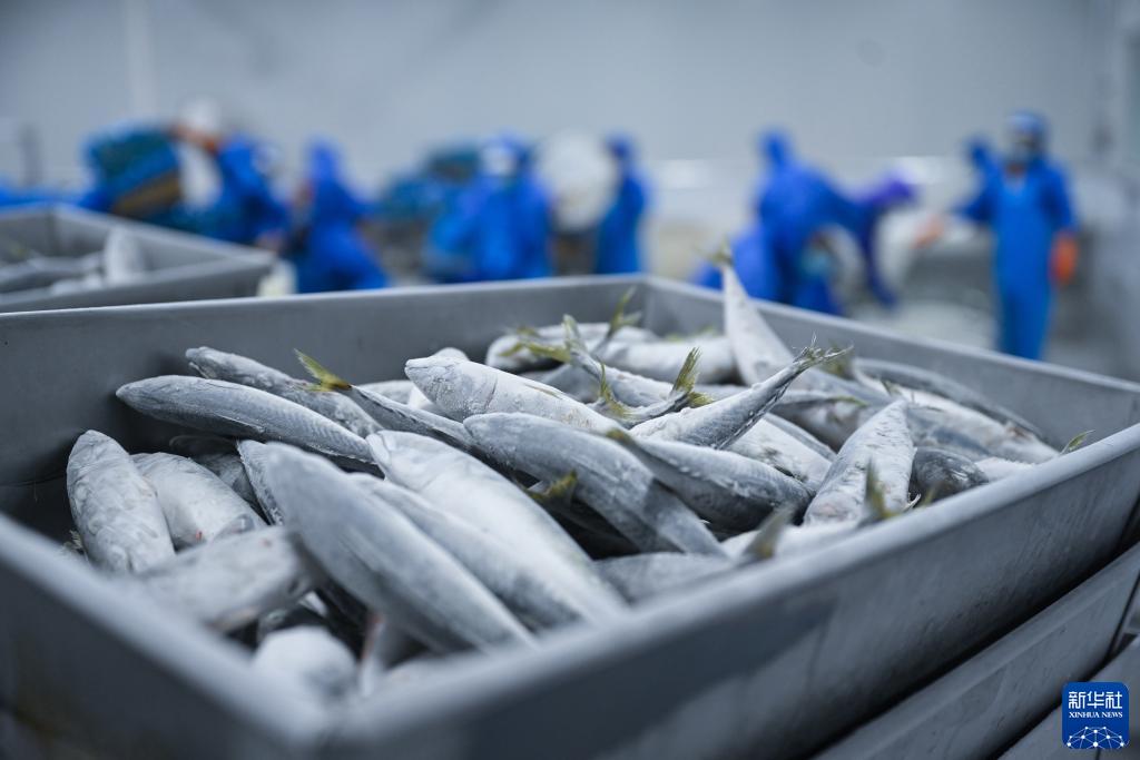 8月24日,在福建省福清市元洪國際食品産業園,工人在福建淼天匯食品有限公司的海魚加工生産線上工作。新華社記者 周義 攝