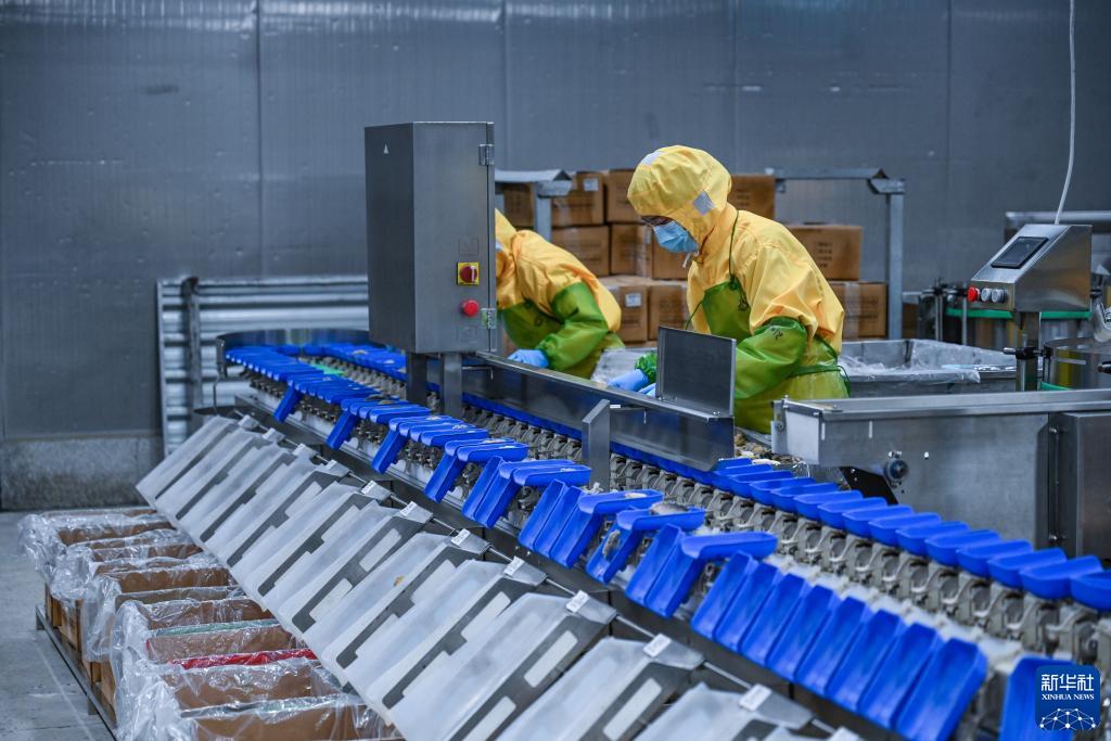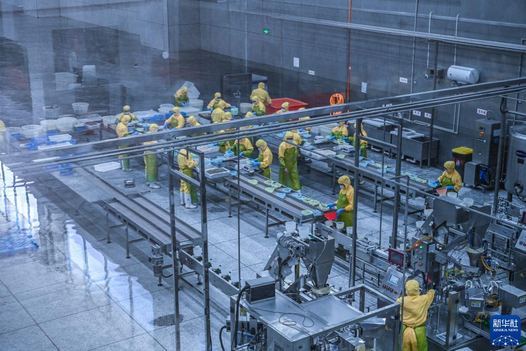 8月24日,在福建省福清市元洪國際食品産業園,工人在福清市兆華水産食品有限公司水産品預製菜加工生産線作業。新華社記者 周義 攝