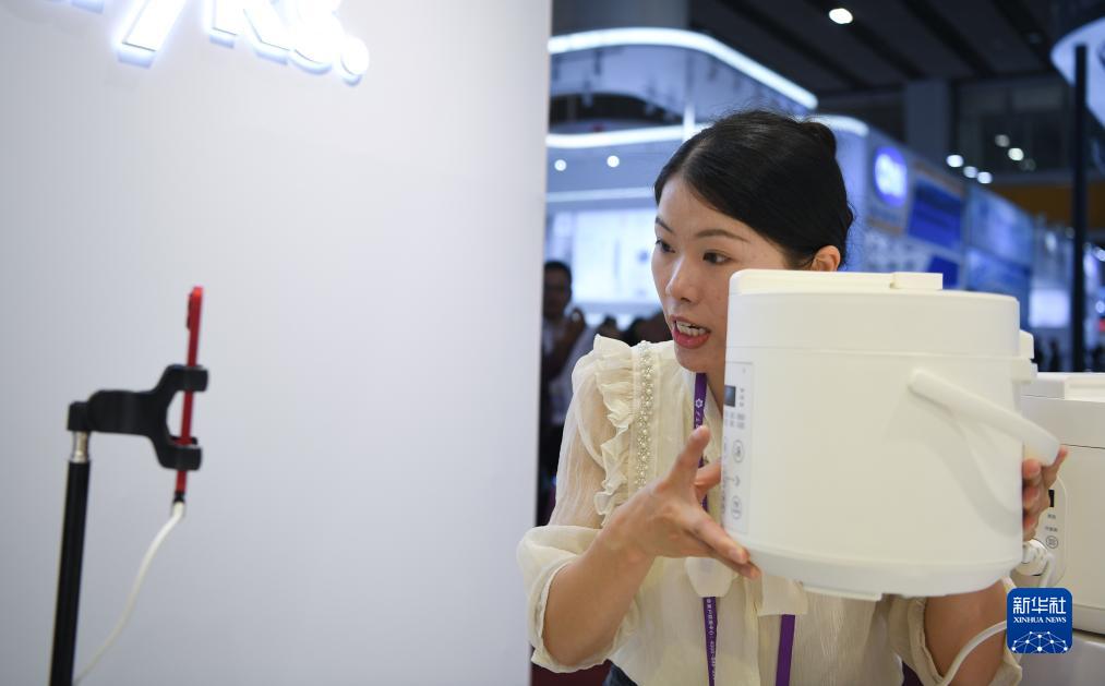 10月15日,參展的工作人員在展&直播介紹家電産品。新華社記者 鄧華 攝
