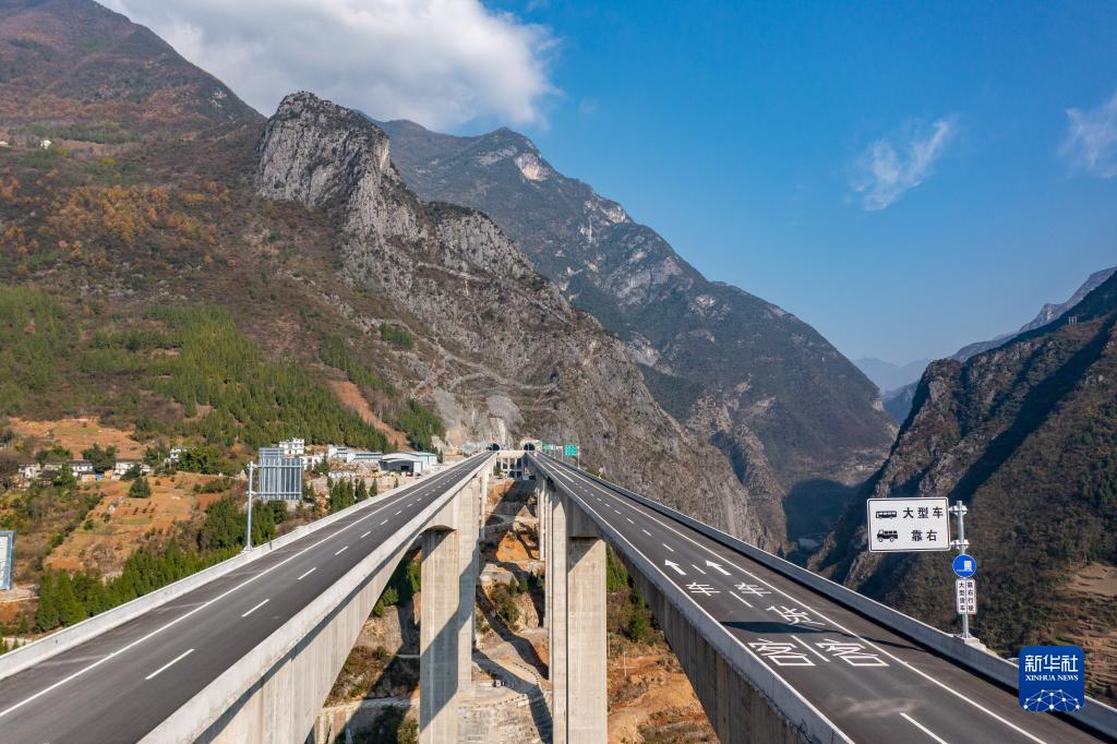 這是12月4日在重慶市巫溪縣拍攝的巫鎮高速巫溪互通(無人機照片)。新華社記者 黃偉 攝