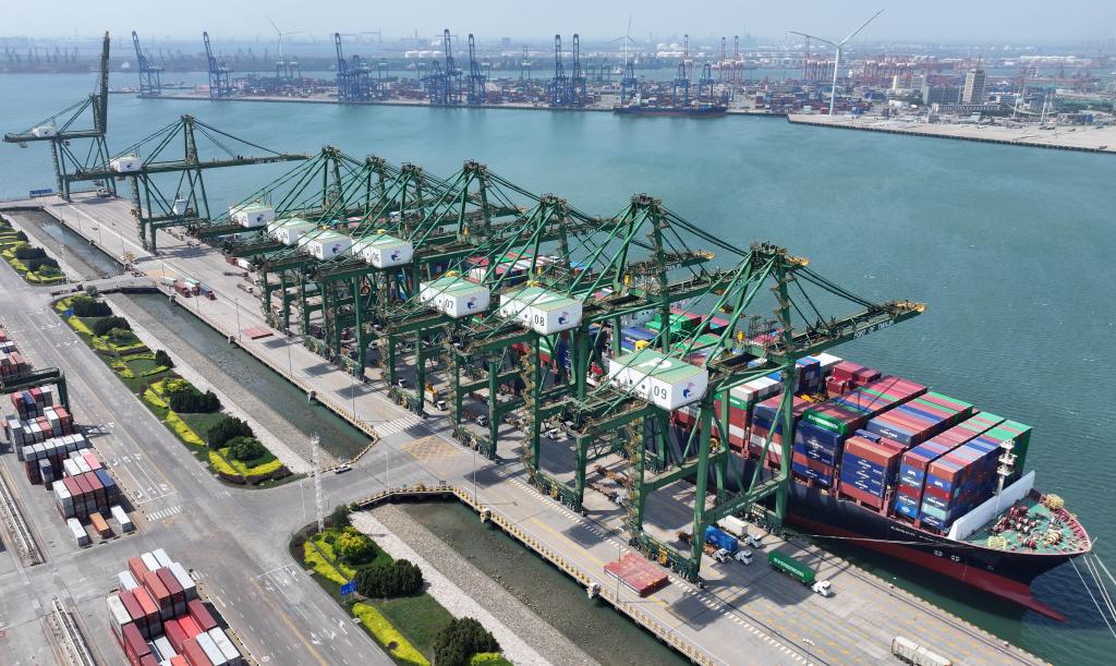 乘着京津冀協同發展和共建“一帶一路”的東風,依託港口戰略資源核心優勢,天津加快建設北方國際航運核心區。天津市港航局綜合業務處處長鄒鸞説,天津港通達全球180多個國家和地區的500多個港口。2024年1月至4月,天津港完成貨物吞吐量1.88億噸,同比增長3.5%,集裝箱吞吐量739.81萬標箱,同比增長6.2%,再創歷史同期新高,帶動天津市外貿規模進一步擴大。