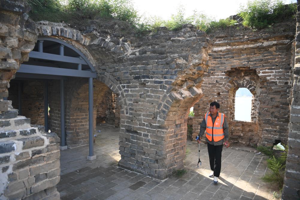 2023年8月30日,河北省唐山市遷西縣喜峰口二村的長城保護員衡丙三在長城上巡查。