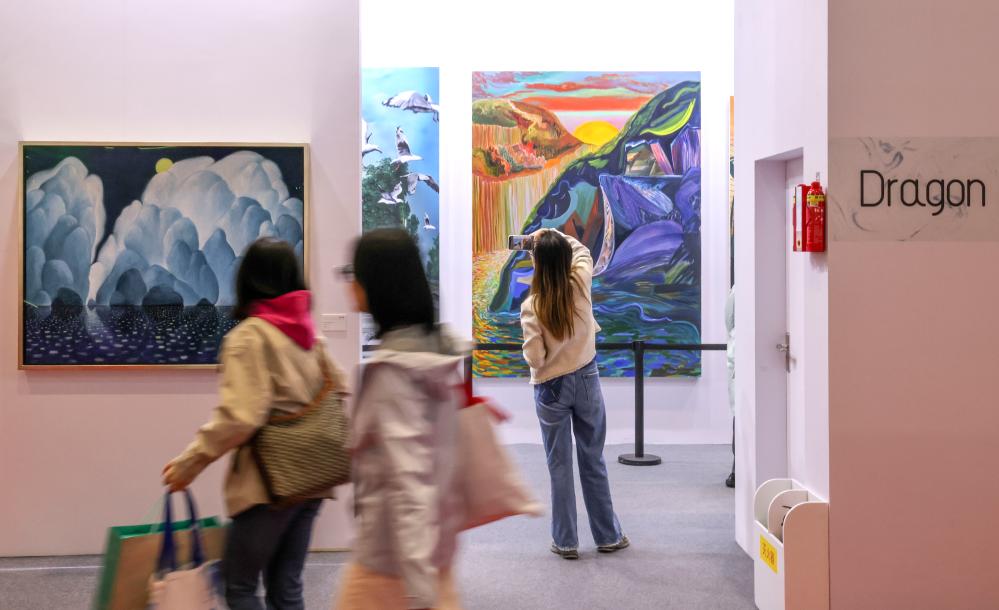11月7日,在第七屆進博會上,連續四年設置的文物藝術品專區吸引觀眾參觀。新華社記者 殷剛 攝