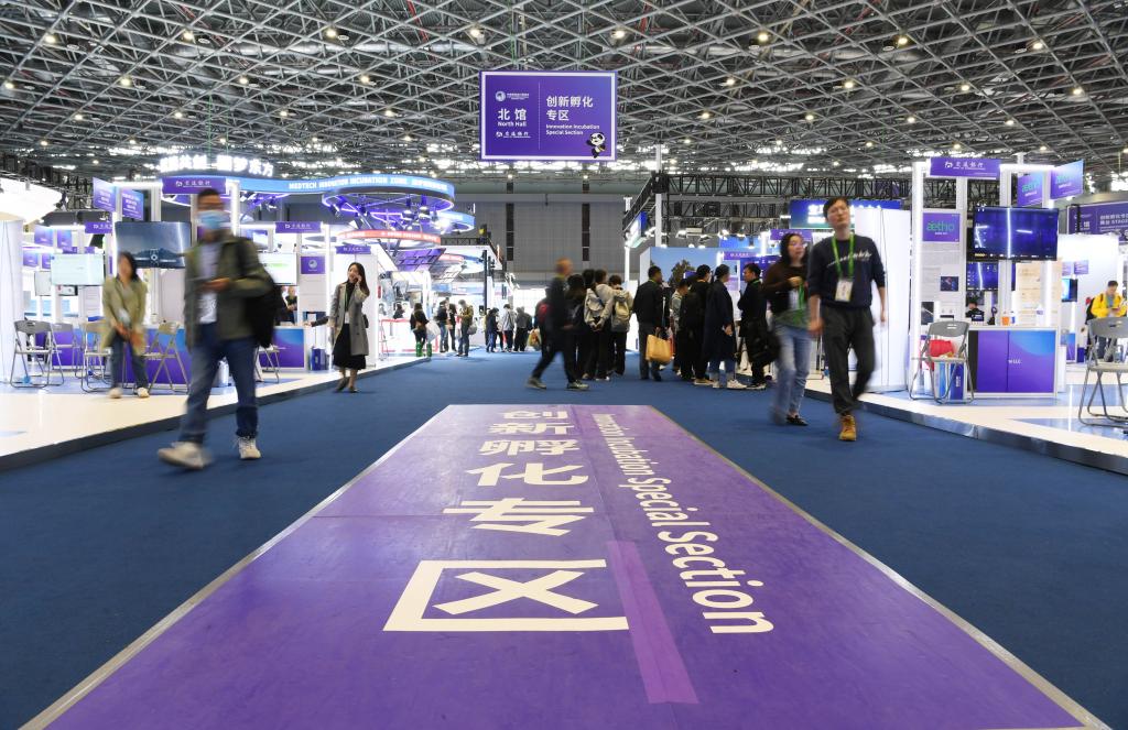 11月9日,人們在第七屆進博會創新孵化專區參觀。新華社記者 金馬夢妮 攝