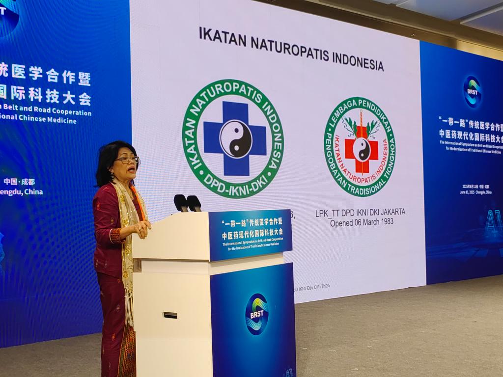 6月11日,來自印尼的中醫藥專家林秋波在成都舉行的“一帶一路”傳統醫學合作暨中醫藥現代化國際科技大會上演講。新華社記者 董小紅 攝