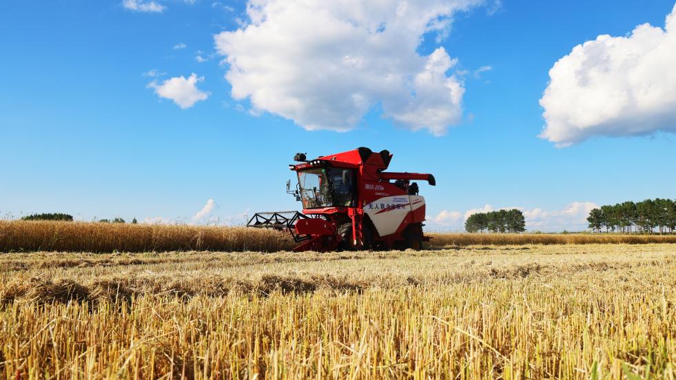 王強介紹,紅星農場有限公司的綠色有機小麥在種植過程中,只使用生物菌劑和有機肥,保證産出的小麥各項指標都達到綠色有機標準。“我們不用除草劑,靠小麥的長勢來壓制雜草。”王強説,近幾年農場還引進了激光除草機器人,作業效率高,除草徹底,“以物理手段替代化學藥劑除草,既環保又健康”。