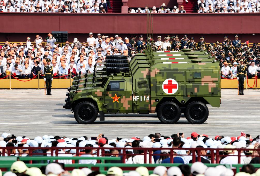 9月3日,紀念中國人民抗日戰爭暨世界反法西斯戰爭勝利80周年大會在北京隆重舉行。這是後勤保障方隊接受檢閱。新華社記者 張濤 攝