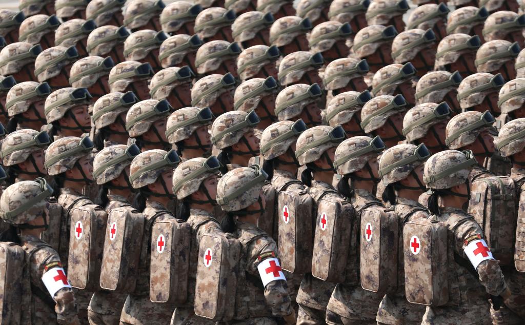3日,聯勤保障部隊方隊走過天安門廣場,接受祖國和人民檢閱。