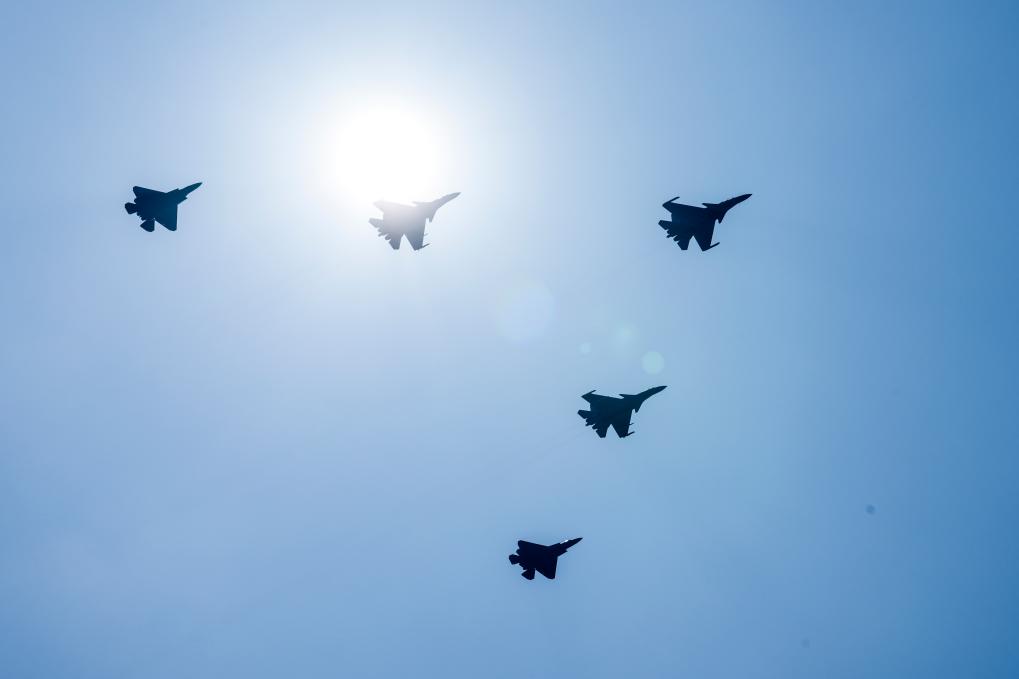 9月3日,紀念中國人民抗日戰爭暨世界反法西斯戰爭勝利80周年大會在北京隆重舉行。這是艦載機梯隊接受檢閱。新華社記者 鄭煥松 攝