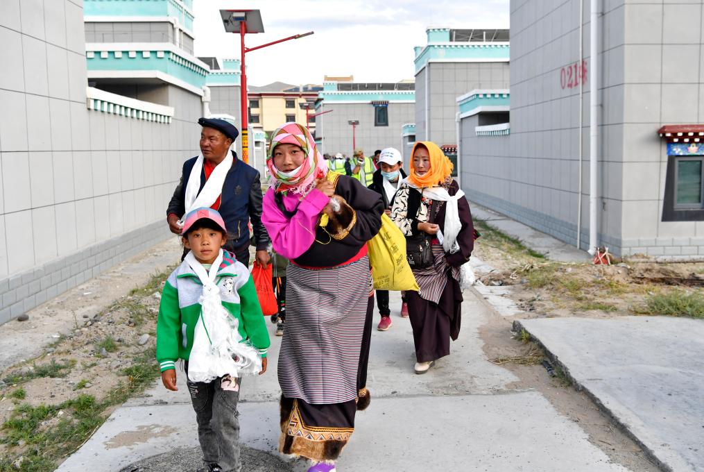 剛剛抵達森布日安置點的雙湖縣牧民正前往新家(2022年7月19日攝)。新華社記者 張汝鋒 攝