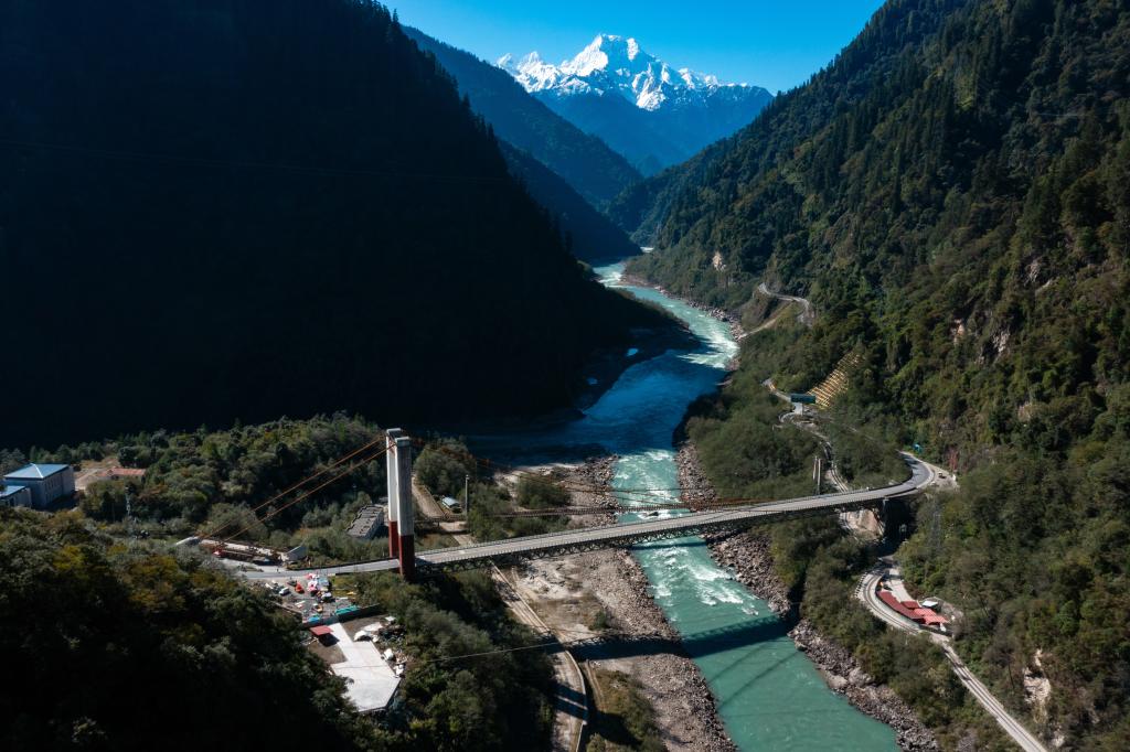 在西藏自治區林芝市波密縣拍攝的國道318公路通麥特大橋(2024年11月8日攝)。新華社記者 沈伯韓 攝