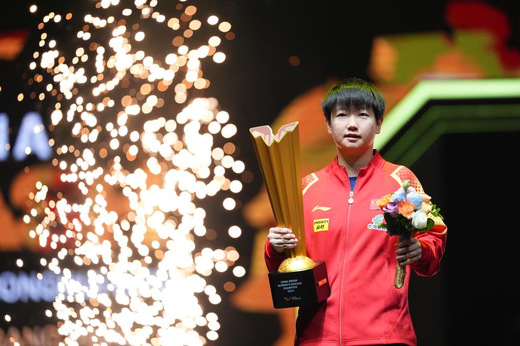 ↑2024年世界乒乓球職業大聯盟(WTT)中國大滿貫女子單打,中國選手孫穎莎奪冠。新華社記者鞠煥宗攝