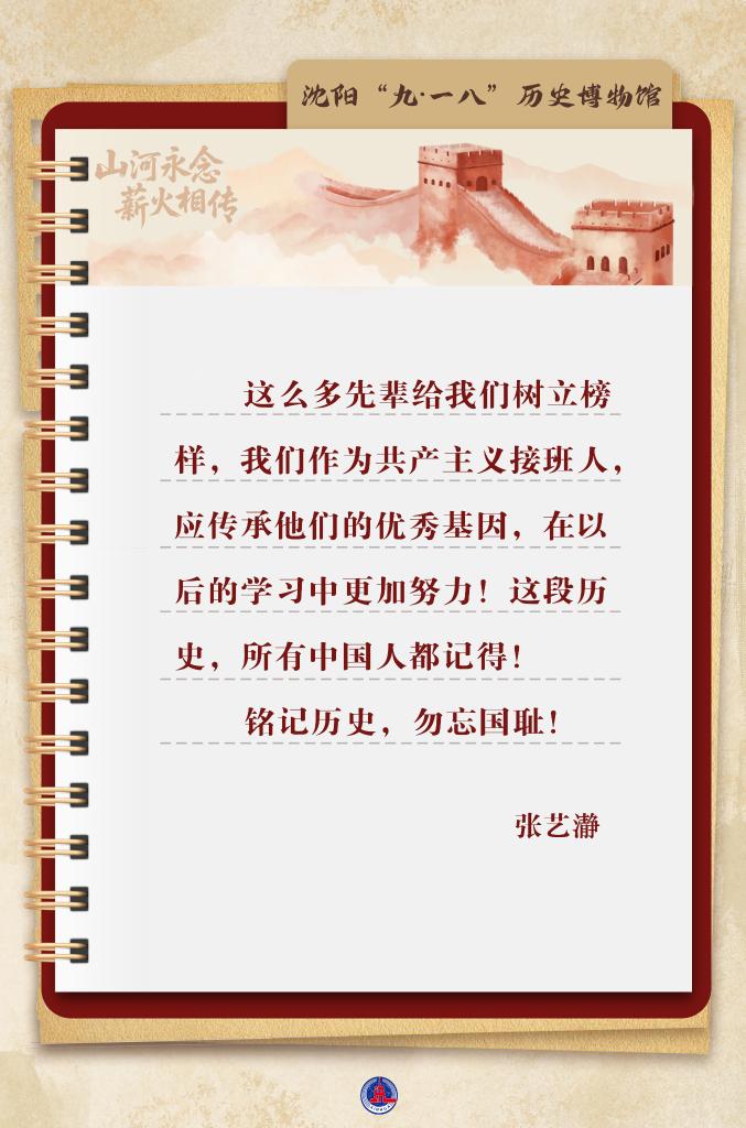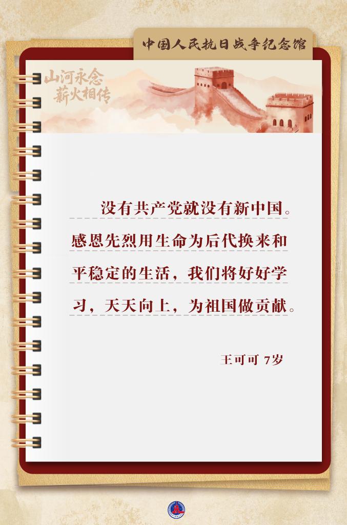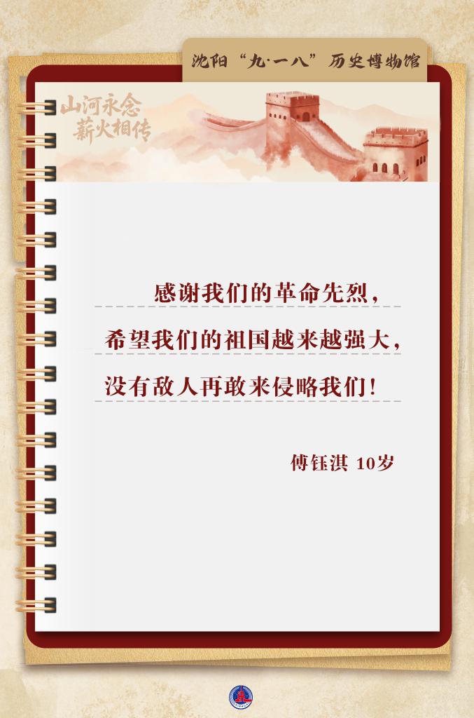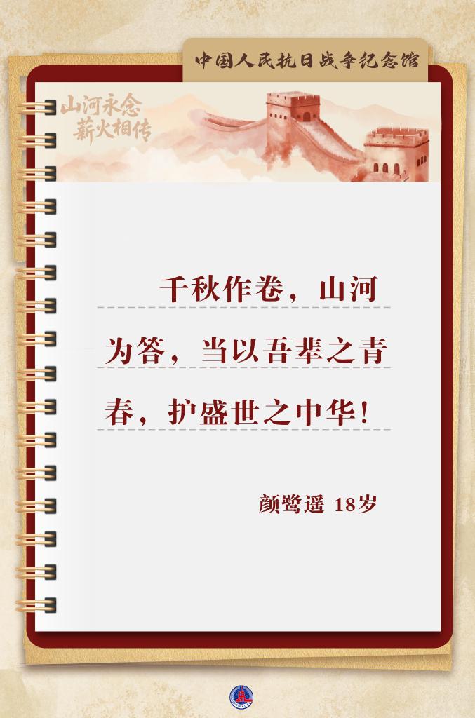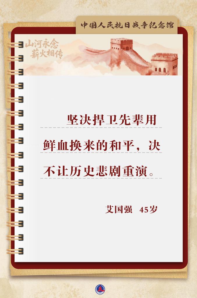 在9月30日烈士紀念日之際,通過根據各地革命紀念館的觀眾留言製作的海報,致敬1931年9月18日至1945年9月2日5098天浴血奮戰的歷史,傳承歷久彌新的偉大抗戰精神。