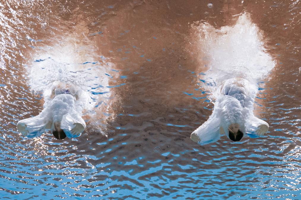 ↑11月2日,廣東隊組合全紅嬋/王偉瑩在跳水女子團體賽雙人10米跳&項目比賽中。新華社記者 夏一方 攝