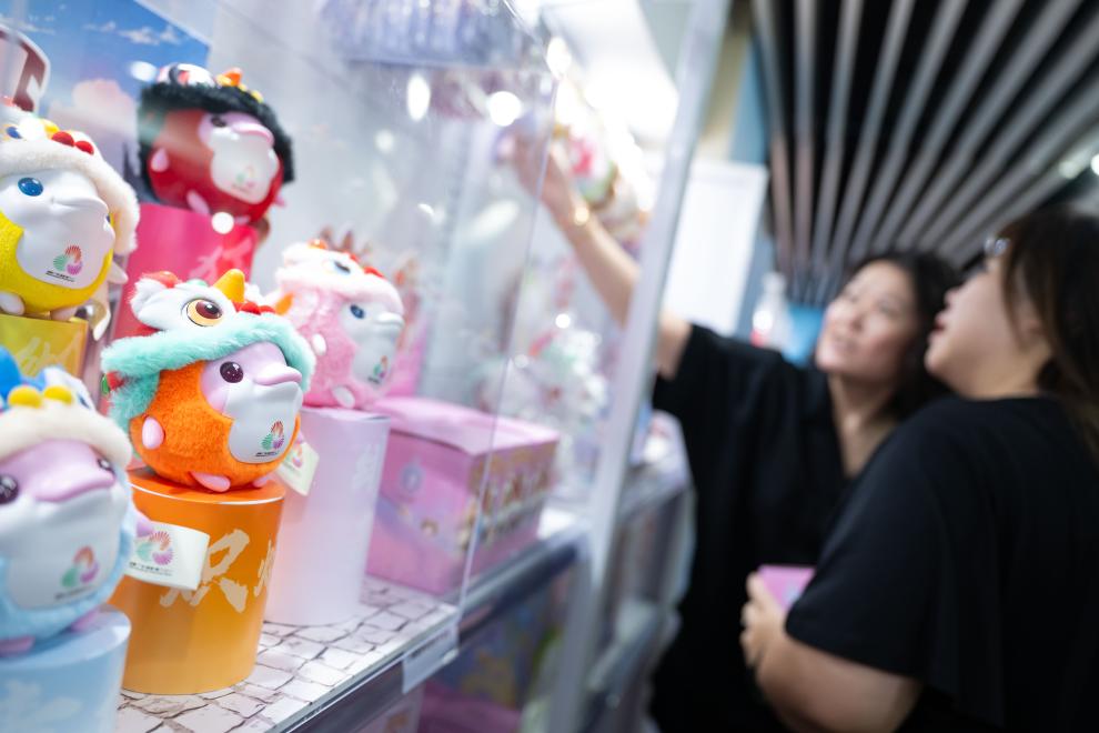 ↑8月1日,市民在十五運會和殘特奧會澳門賽區官方特許商品零售店選購。新華社發(張金加攝)