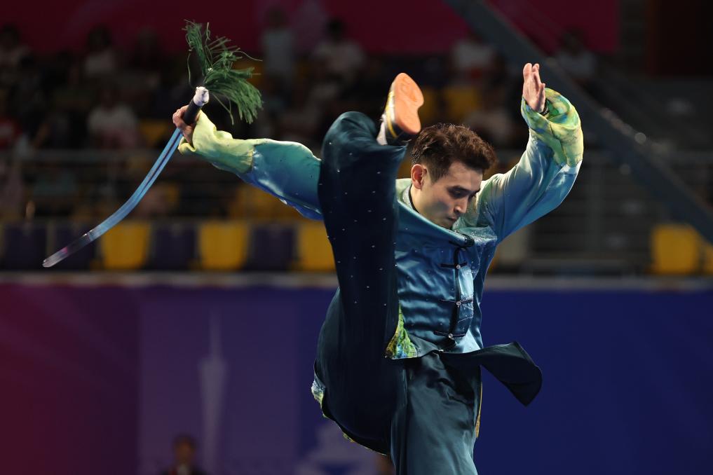 11月8日,山東隊選手劉德文在男子太極拳太極劍全能項目太極劍比賽中。最終,他獲得冠軍。新華社記者 楊世堯 攝