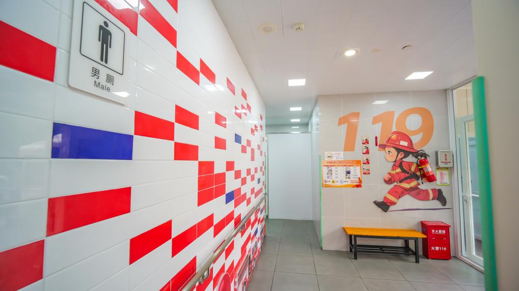 這是萬源城公廁的裝飾,以消防安全為主題。新華社發