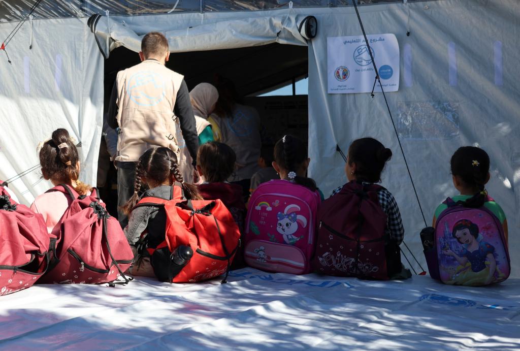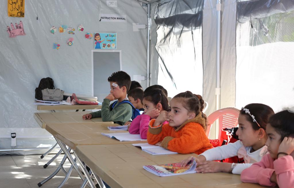 這所臨時學校由聯合國兒童基金會、拉塔基亞省教育部門及當地公益機構合作設立,招收一至五年級的學生,目前約有120人就讀。學生大多剛從敘國內各個難民營或土耳其返鄉,許多人錯過了正規教育。