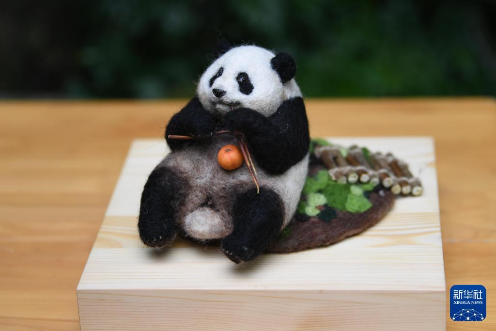 這是2023年5月29日在成都大熊貓繁育研究基地都江堰野放繁育研究中心拍攝的市民以梅蘭為原型製作的毛氈禮物。新華社記者 胥冰潔 攝