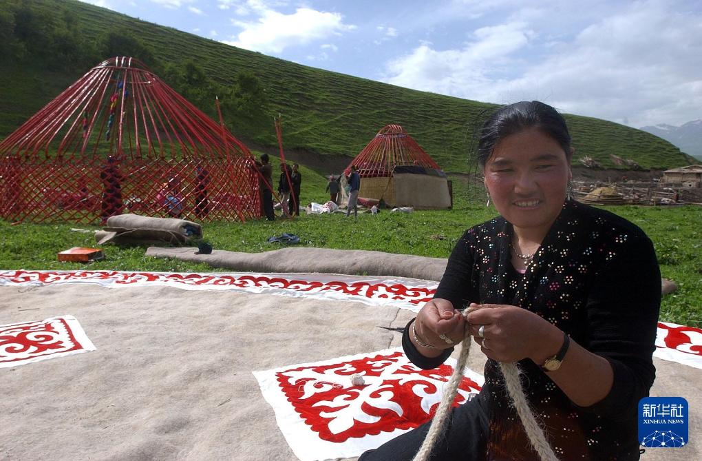 2011年3月19日,新疆阿合奇縣柯爾克孜族牧民歡度諾魯孜節,在活動現場展示傳統搟氈子手工藝。新華社發(金煒 攝)