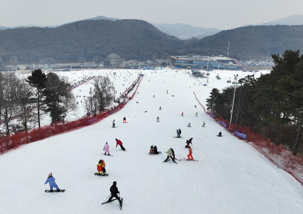 12月6日,滑雪愛好者盡情享受雪季(無人機拍攝)。周末,瀋陽東北亞國際滑雪場迎來眾多滑雪愛好者。新華社記者 李鋼 攝