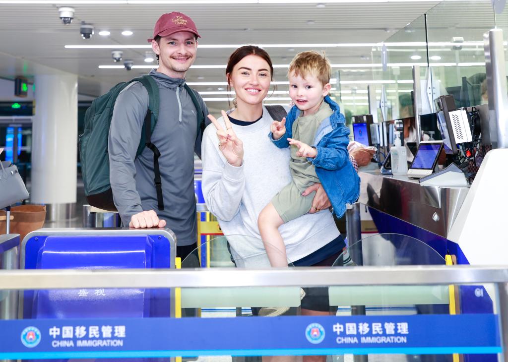 12月18日,在海口美蘭邊檢站,入境旅客在排隊等候邊檢查驗期間留影。新華社發(孫浩戎 攝)