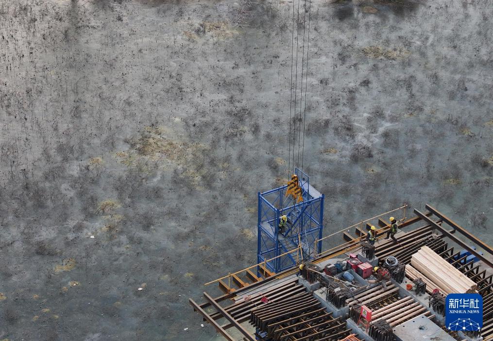 2024年1月25日,中鐵二十局工人在位於陜西省西安市的西延高鐵渭河特大橋施工現場工作。新華社記者 張博文 攝