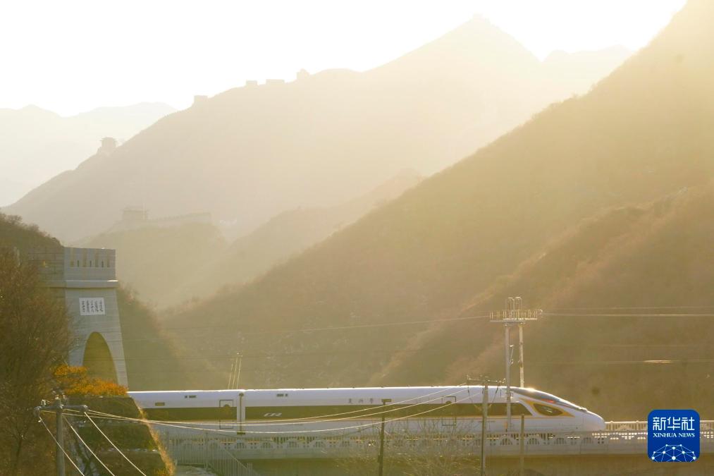 2019年12月30日,中國首條智能高鐵——京張高鐵開通運營。這是一輛列車駛過居庸關長城。新華社記者 邢廣利 攝