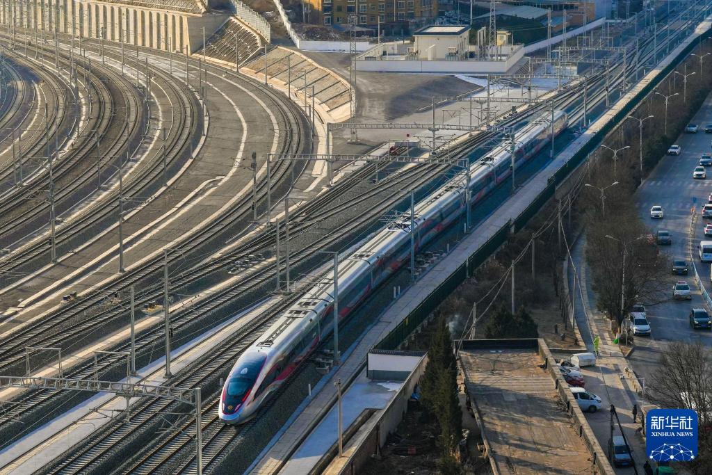 這是2025年12月26日在西安北站拍攝的西安開往延安的西延高鐵C9312次首發列車。新華社記者 邵瑞 攝