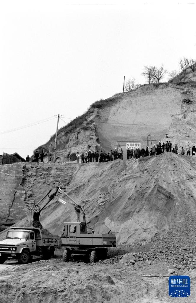 1991年3月30日,通往陜西延安的第一條鐵路——西(安)延(安)鐵路建設工程緊張進行。新華社記者 張喆鋒 攝