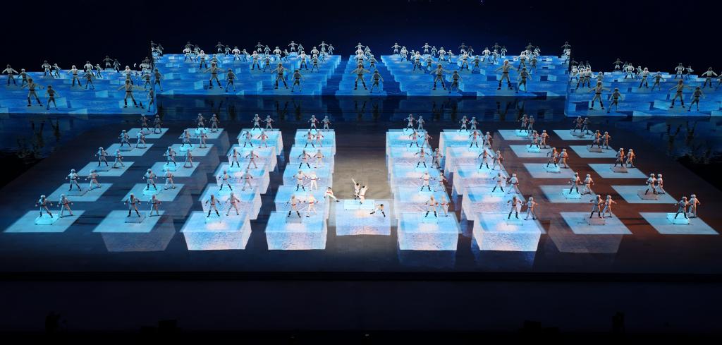↑2月7日,演員在開幕式上表演。當日,第九屆亞洲冬季運動會開幕式在哈爾濱舉行。新華社記者 陳益宸 攝