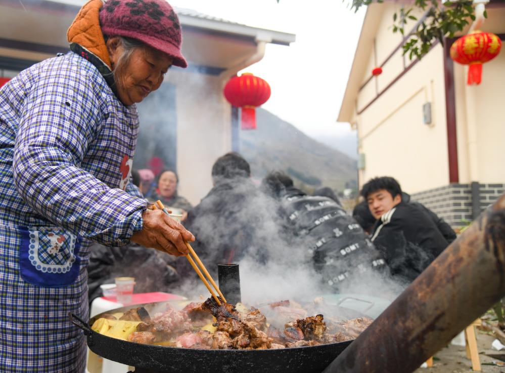 2025年1月25日,村民參加楊芬家舉辦的喬遷宴。