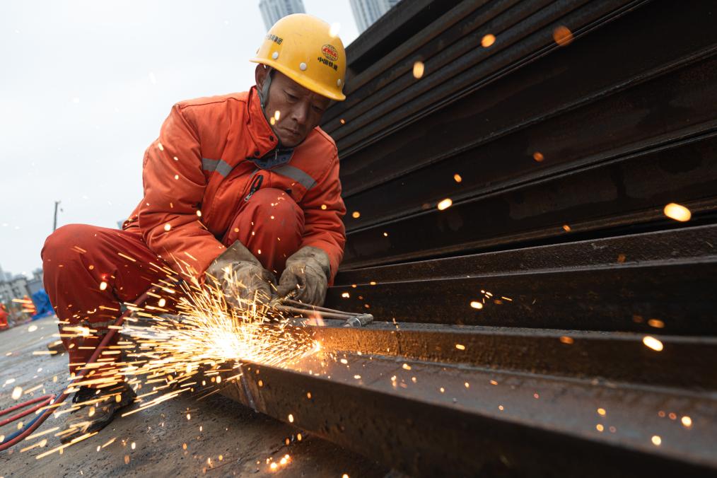 2026年1月1日,中鐵十四局工人在武漢地鐵10號線一期工程建設現場施工。新華社記者 肖藝九 攝