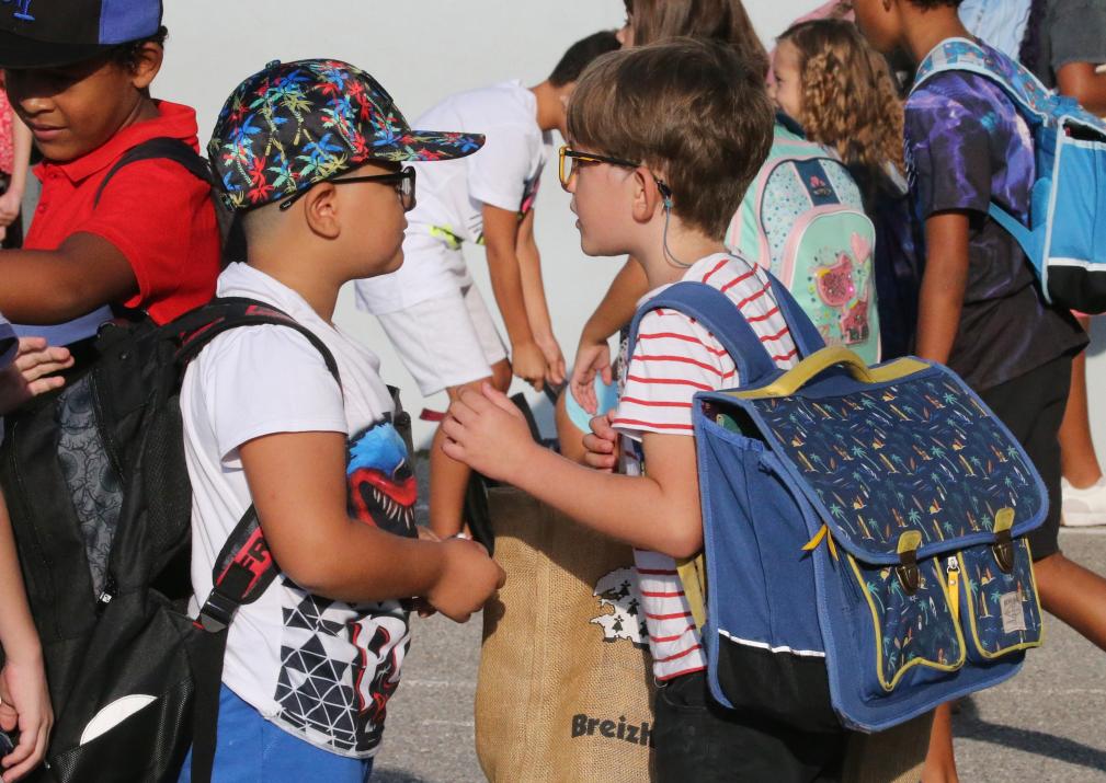 2022年9月1日,在法國南部小城昂蒂布,學生們抵達學校。新華社發(塞爾日·阿烏齊攝)