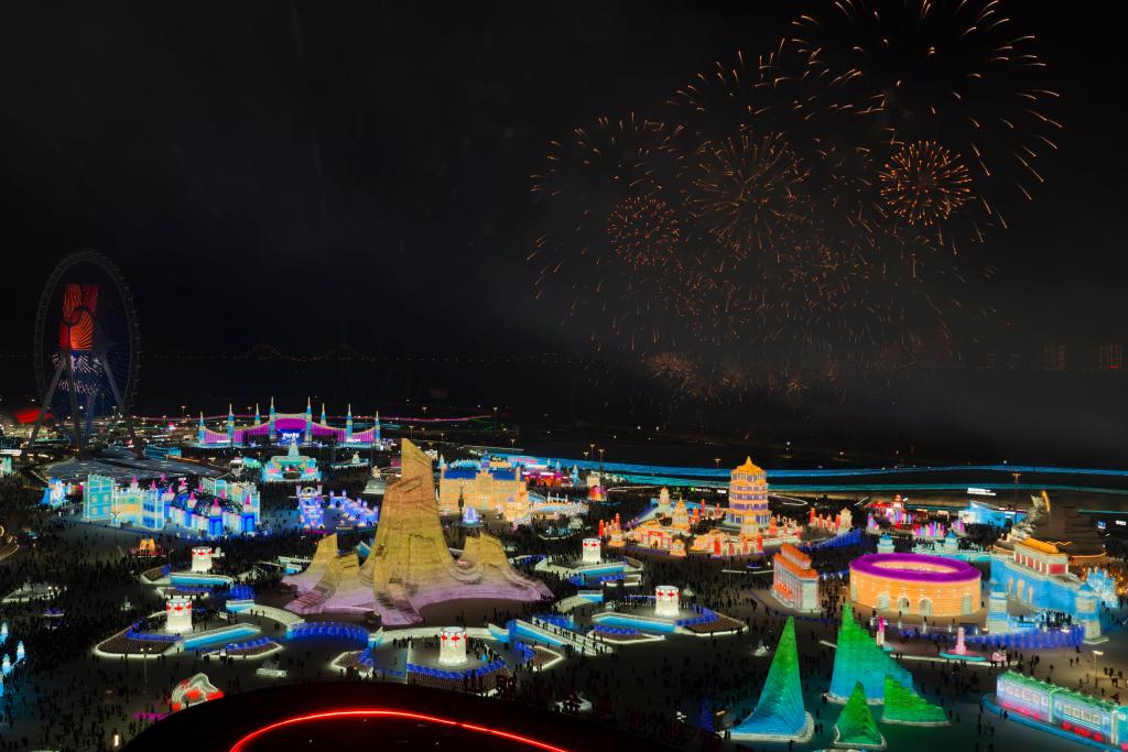 1月5日17時許,松花江北岸,夜空被璀璨的煙火點亮。在零下十幾攝氏度的嚴寒中,第42屆中國·哈爾濱國際冰雪節在哈爾濱冰雪大世界啟幕!