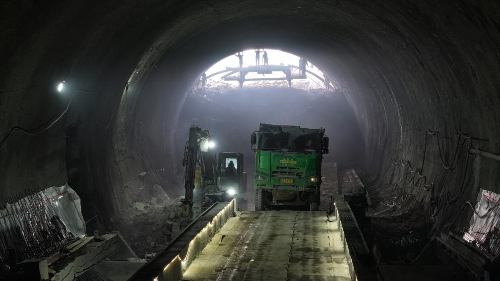 施工人員在新建綏芬河隧道中開展監測作業(2025年5月27日攝)。