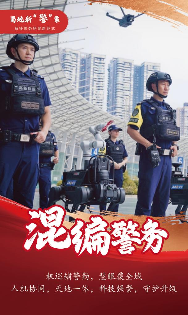 成都高新公安攜人工智能警用設備在世運村開展工作。