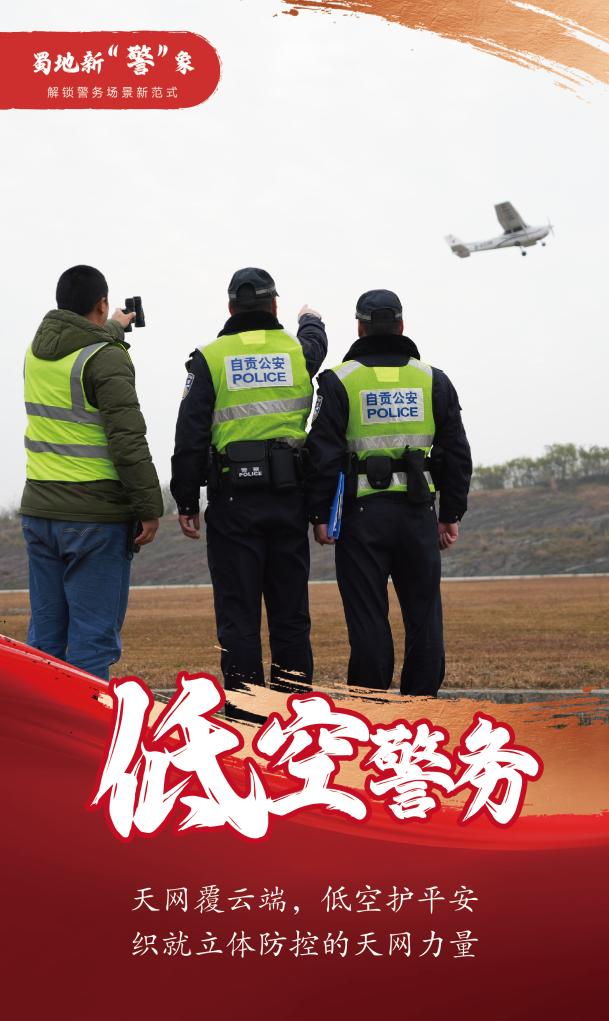 四川自貢公安在機場分局轄區內觀摩小型飛機起飛。