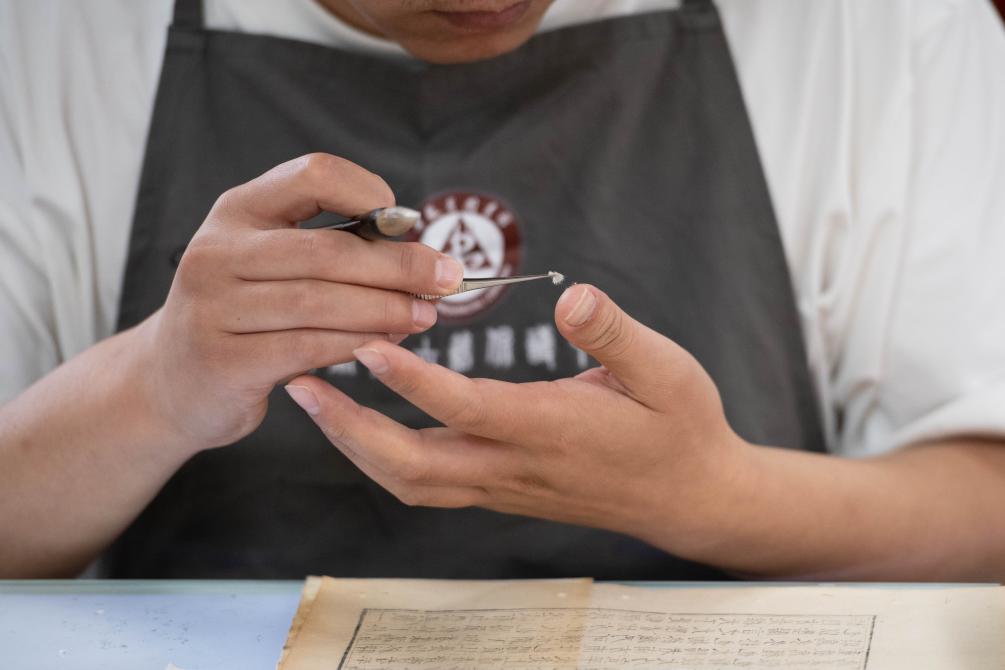 2025年6月24日,古籍修復師金鑫在拼碎片。