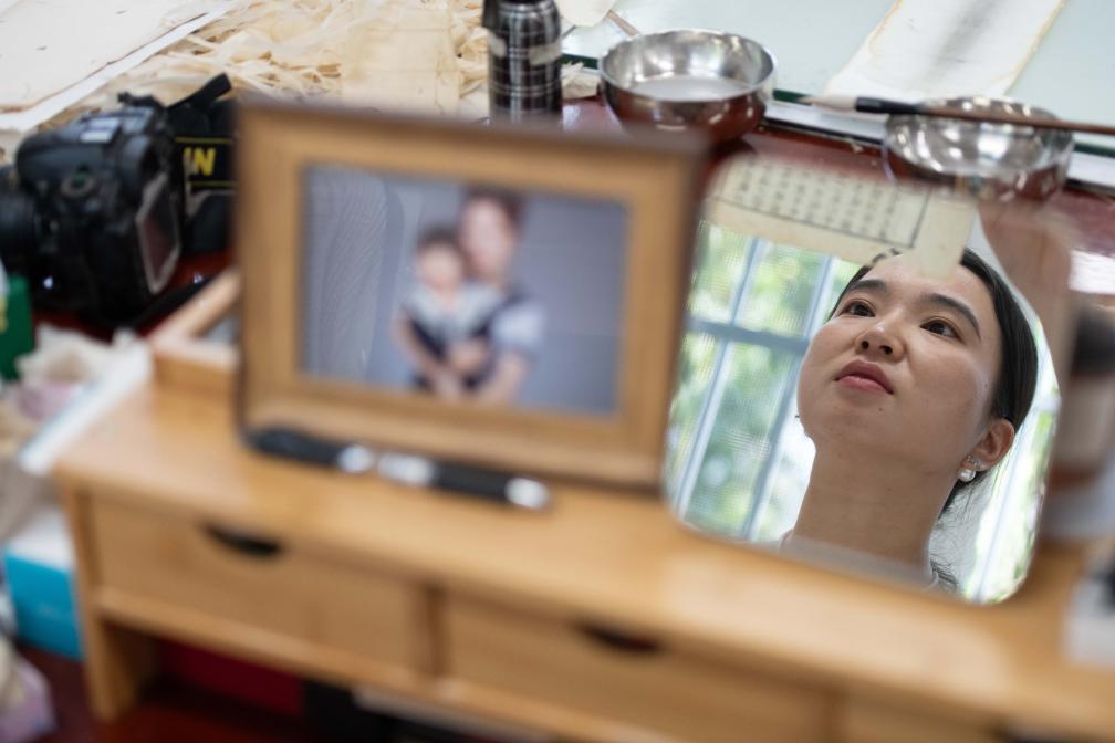 採訪中,我的目光總會被細節吸引:晨光透過楓楊樹葉,灑落在工作&上;噴壺噴出的霧狀水汽輕輕濕潤泛黃書葉;修復師以指尖承托着需要拼接的碎紙片,動作輕柔。6位“修書人”用耐心、細心和靜心,在破損書葉間打撈流失的文明記憶,而我的鏡頭,則試着留存那份讓文脈延續的信念。