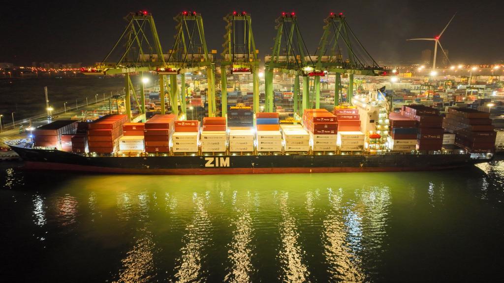 1月1日晚,首船智利進口車厘子順利抵津。新華社記者 趙子碩 攝