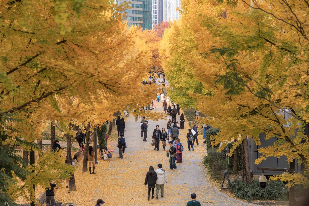 11月9日,人們在韓國首爾市首爾林公園內賞秋。新華社發(樸晉澤攝)