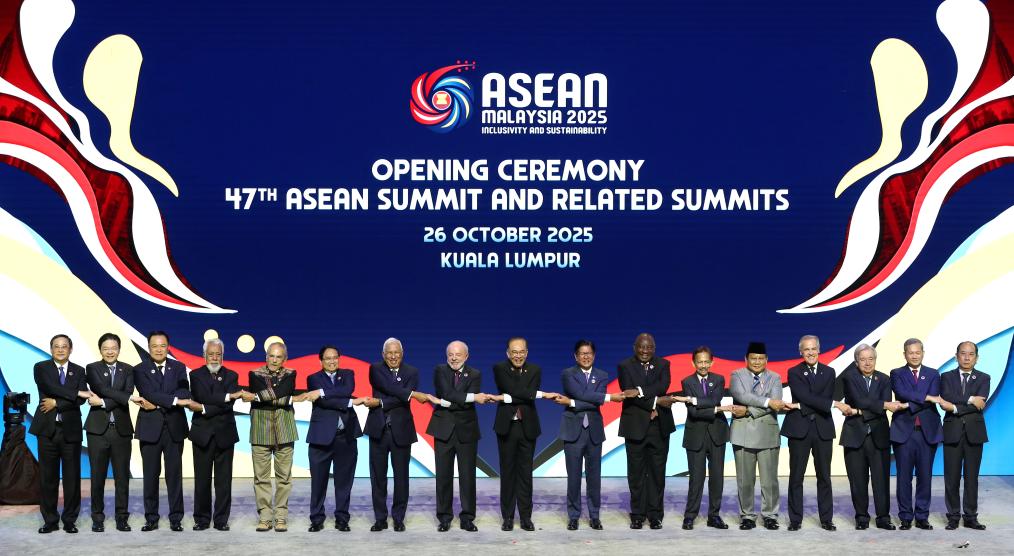 2025年10月26日,在馬來西亞首都吉隆坡,嘉賓在第47屆東盟峰會及系列會議開幕式上合影。新華社記者岑雲鵬攝