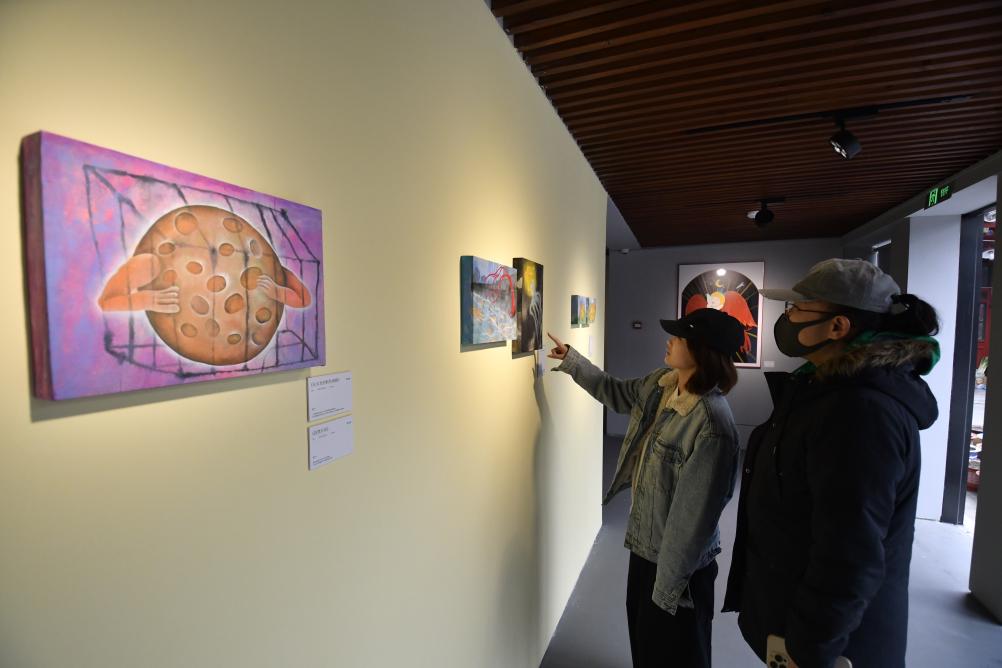 10月29日,游人在西總布胡同“時空集美術館”內參觀美術展覽。