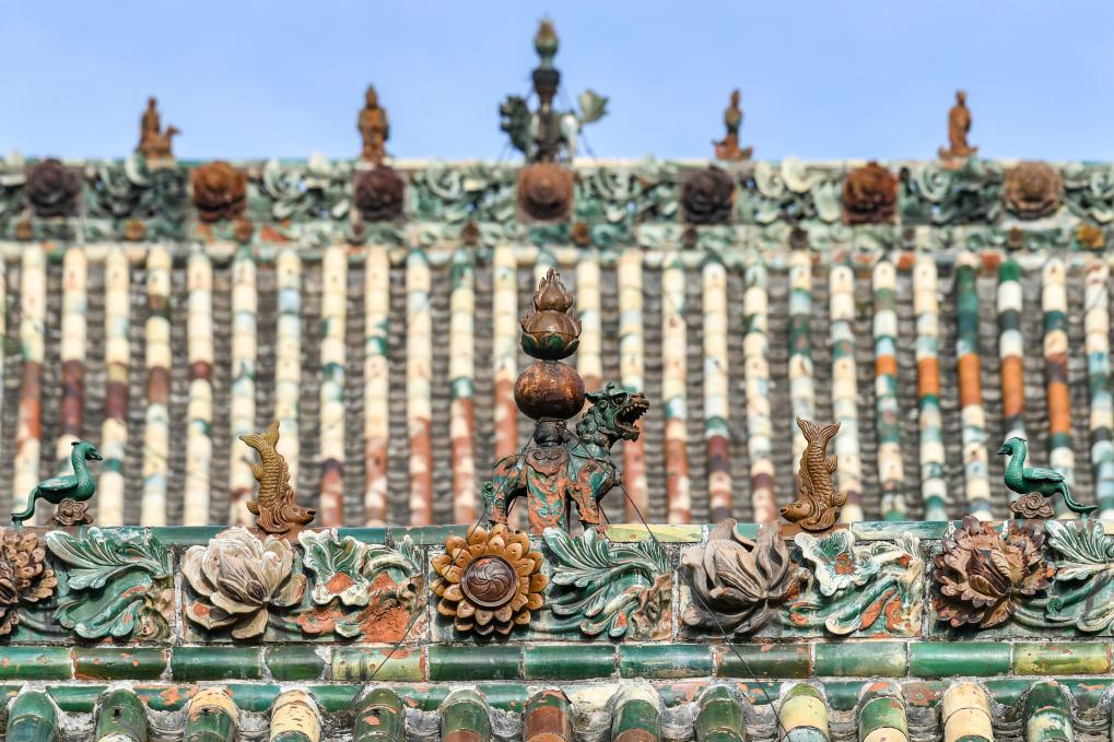 古建築上的瑞獸構件製作題材囊括民間傳説、神話典故、魚蟲鳥獸、花草樹木,包羅萬象,五彩繽紛,具有鮮明的地域特色和濃郁的鄉土氣息。