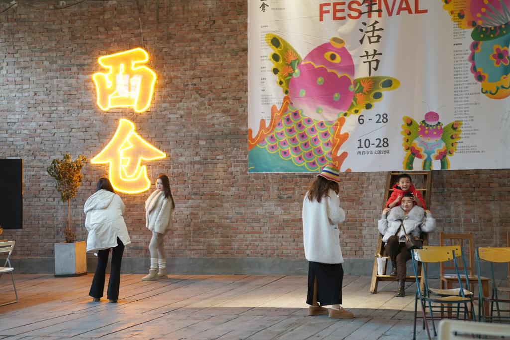 12月6日,游人在西安西倉市集文創公園一處文化空間內拍照。這座公園由位於西安市蓮湖區的老西倉市集改造而來。