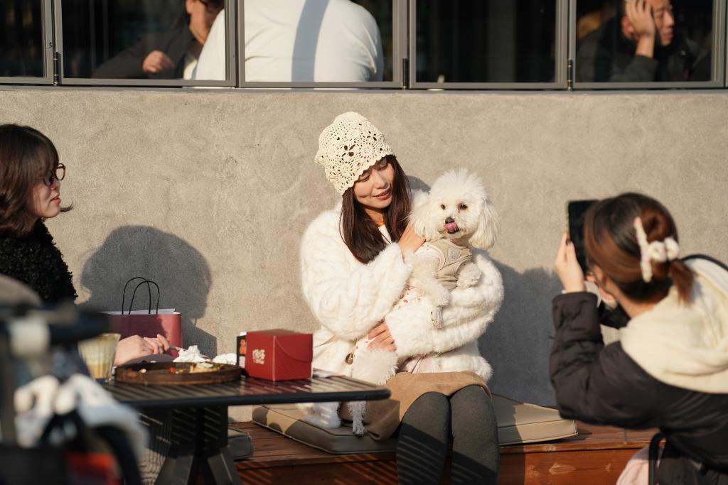 12月4日,游人在西安時光文化公園消費休閒。這座公園是由西安國營第一鐘錶機械廠舊廠區改建而來的。