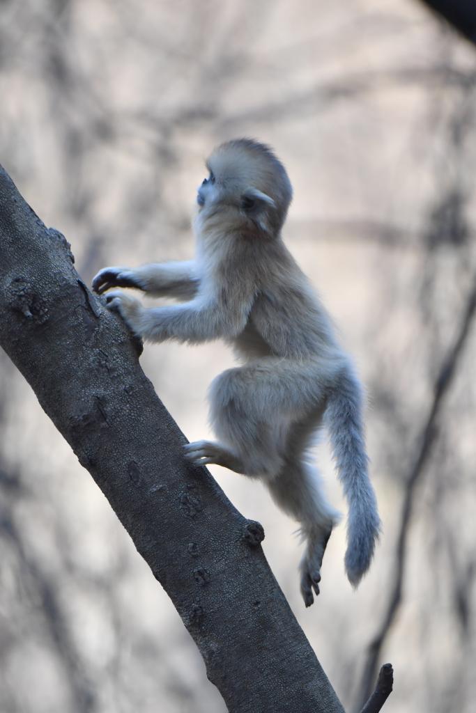 “我們監測發現,這個金絲猴種群有340隻,今天來了約200隻。冬天食物比較短缺,金絲猴有時會分成小群尋找食物。”陜西周至國家級自然保護區雙廟子保護站副站長喬冰勃説,“這個金絲猴種群中今年出生的幼猴有46隻,總數從2022年監測之初的180隻,到2023年的240隻,又增加到現在的340隻。可以説是不斷‘添丁進口’。”