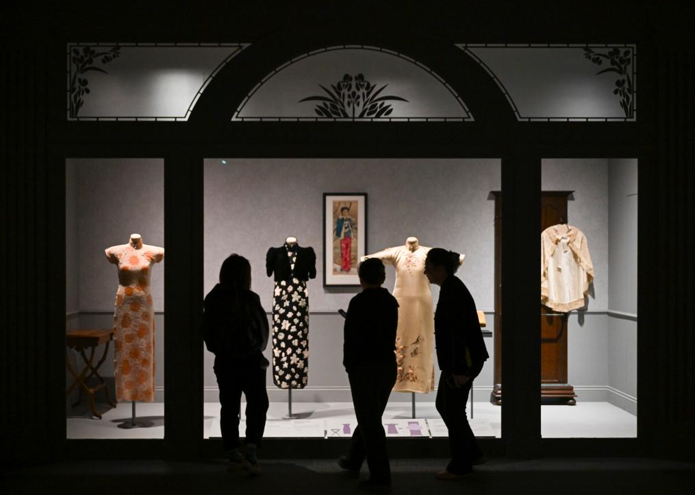 12月22日,觀眾在“摩登華影:海派旗袍與百年時尚”預展上欣賞展品。
